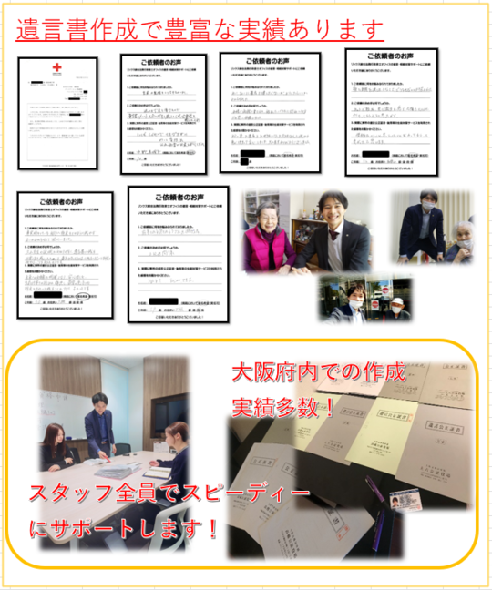 アクセスが良好であり、大阪市内の皆様より遺言書作成の多数のご相談をいただいております。